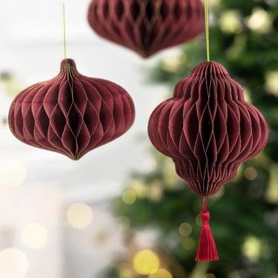 A beautiful deep red honeycomb decoration with fancy tassel, perfect for festive celebrations! A lovely large honeycomb, perfect for your Christmas table, mantlepiece or to hang on a large tree.